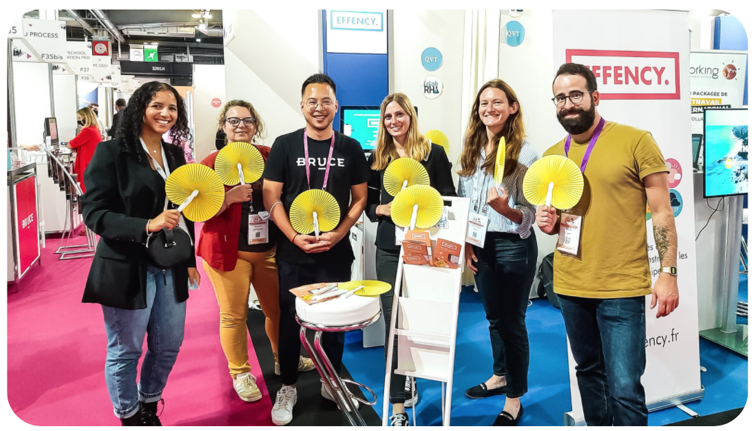 Il y a eu plusieurs moments forts pour EFFENCY : le premier qui me vient en tête est la rencontre « in real life » (IRL) d’une personne que je n’avais pas vue depuis 3 ans au moins. Autre coup de cœur, une partie d’une des équipes que nous accompagnons chez Stelliant est passée nous rendre visite sur notre stand. C’était un grand honneur de les accueillir ! Et enfin, les supers échanges que nous avons eus avec les autres startups du Lab RH : très sympathique de partager avec des pairs !